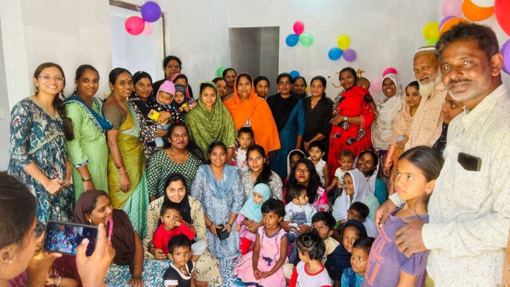 We set out to find a space to set up an AWC for the women of this MAS. We also made a list of 65 children eligible for attending the soon-to-be established AWC. Filled with hope and determination, the next MAS meeting was dedicated to discussions about the requirements for an AWC. Soon after, the women identified five vacant rental houses in Pillaganahalli; they shortlisted two of these based on essential criteria such as adequate seating space for children, water supply, toilet facilities, and a secure compound.